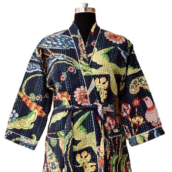 100% Etnische Katoenen Kantha Kimono Gewaad Mooie Bloemenprint Handgemaakte Kamerjas Strandkleding Voor Dames Zomer Herfst Thermisch