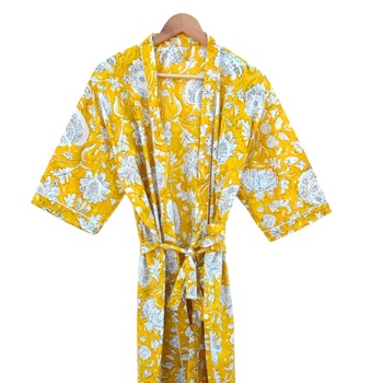 100% Indiase Zomer Handgemaakte Dames Kimono Gewaad Jurk Lange Bloemen Boho Print Casual Gratis Formaat Digitale Afdrukmethode